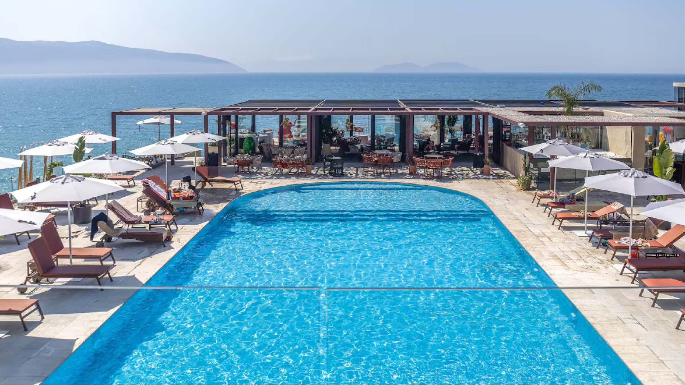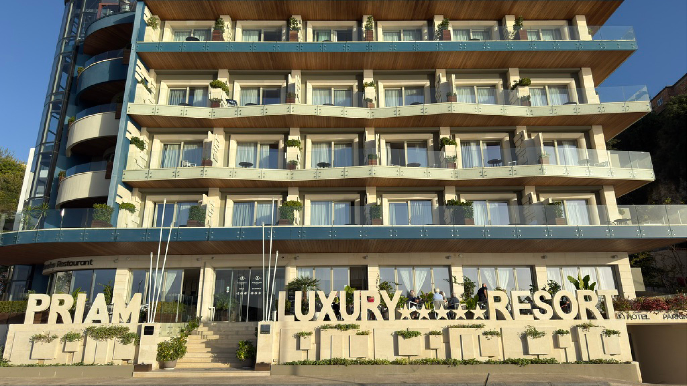 Priam Hotel Luxury Resort är ett stilfullt och modernt hotell med ett utmärkt läge vid havet strax utanför Vlora, perfekt för dig som söker komfort, avkoppling och närhet till både stad och strand. Hotellet, som stod klart 2021, erbjuder en harmonisk atmosfär där modern design möter lugn semesterkänsla. Från den generösa takterrassen njuter du av en spektakulär panoramautsikt över Adriatiska havet, med takpool och takbar som bjuder in till svalkande dopp och stämningsfulla kvällar i solnedgången.